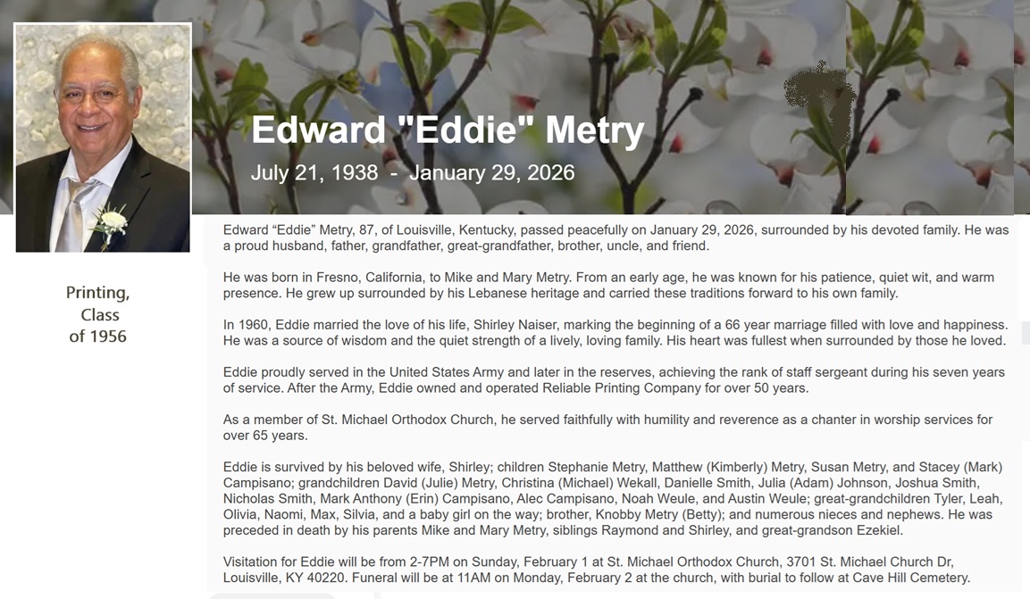 | Edward "Eddie" Metry | July 21, 1938 | January 29, 2026 | 1956 |