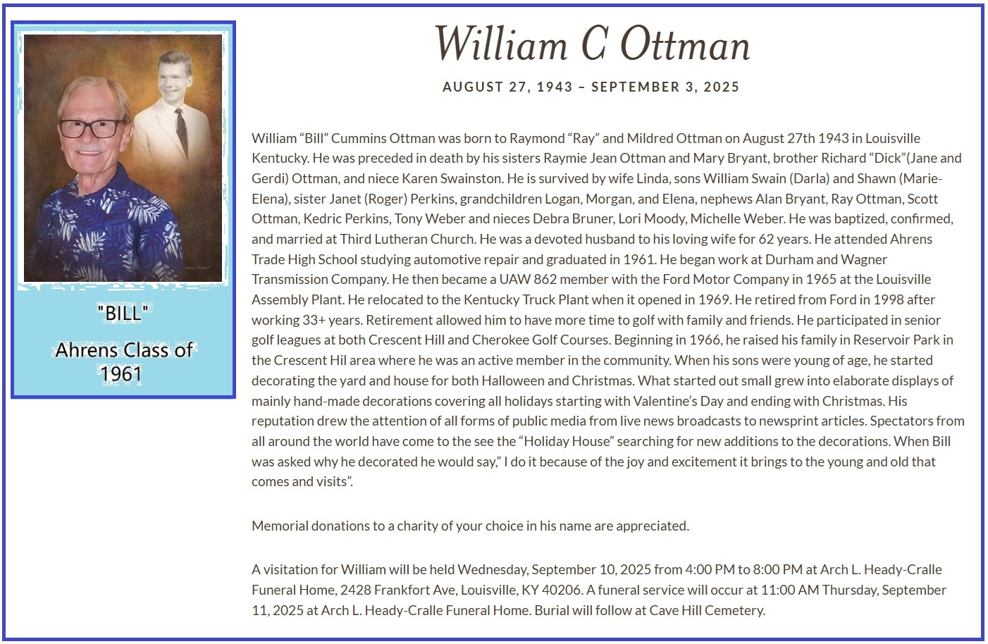 | William "Bill" C. Ottman | August 27, 1943 | September 03, 2025 | 1961 |